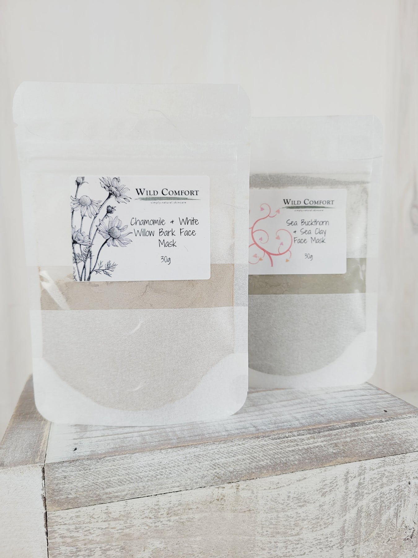 Chamomile & White Willow Bark Clarifying Mask Ingredients: Bentonite clay, Salix alba (white willow) bark powder, Matricaria recutita (chamomile) flower powder